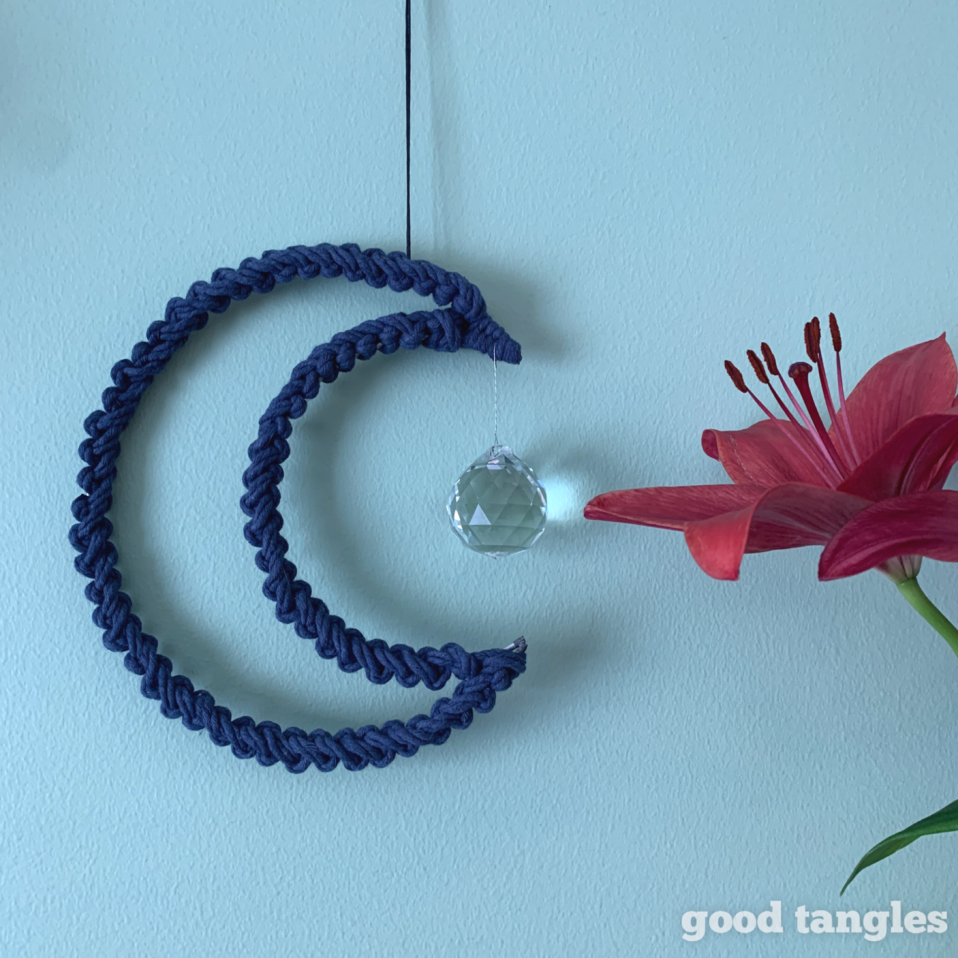 Cute navy moon with a stunner of a dangly sun-catcher.